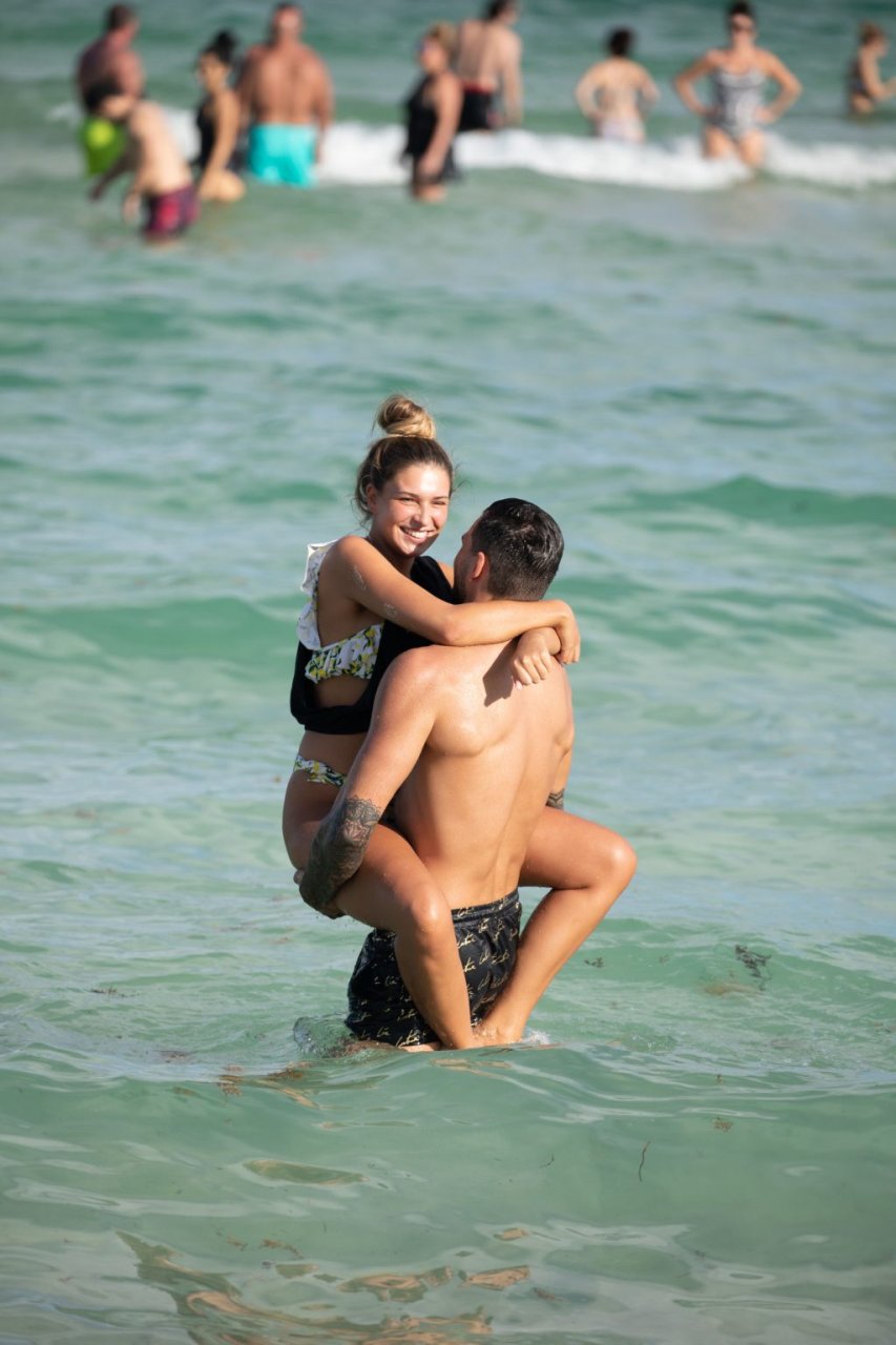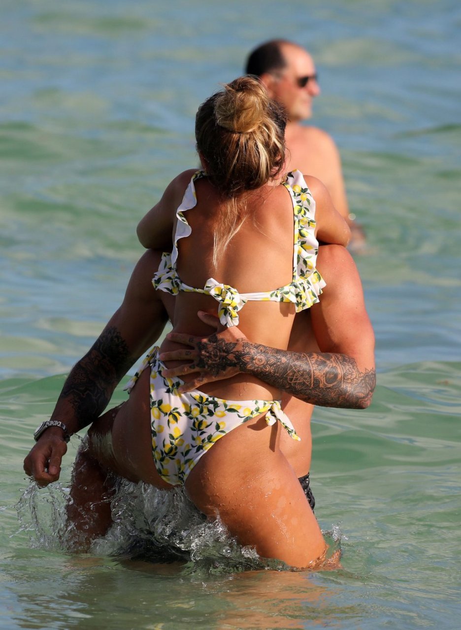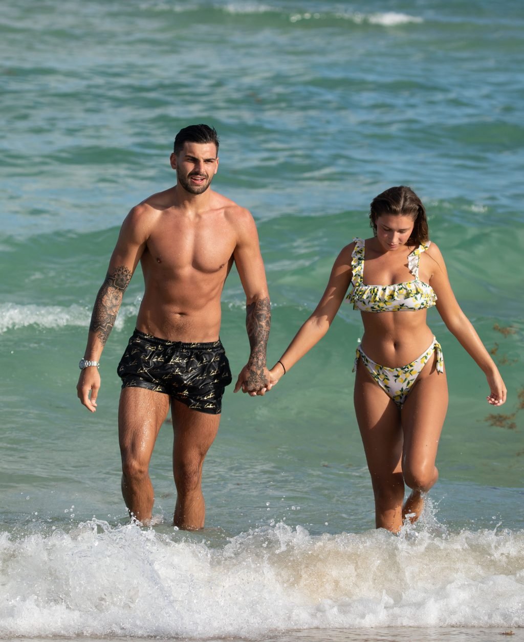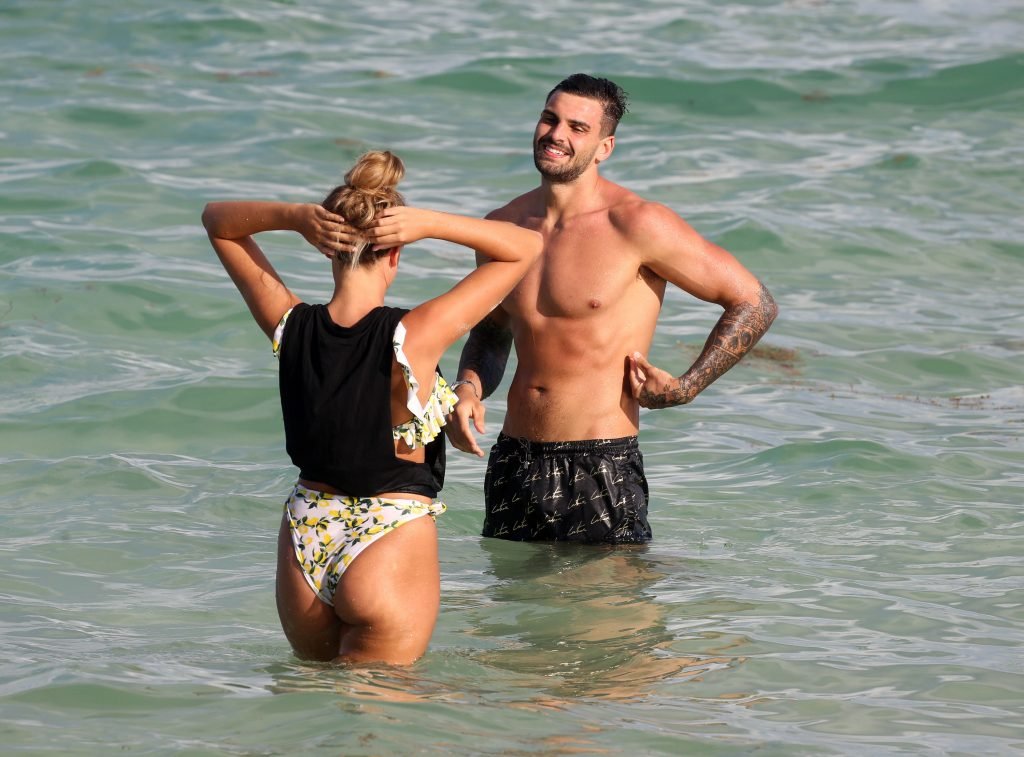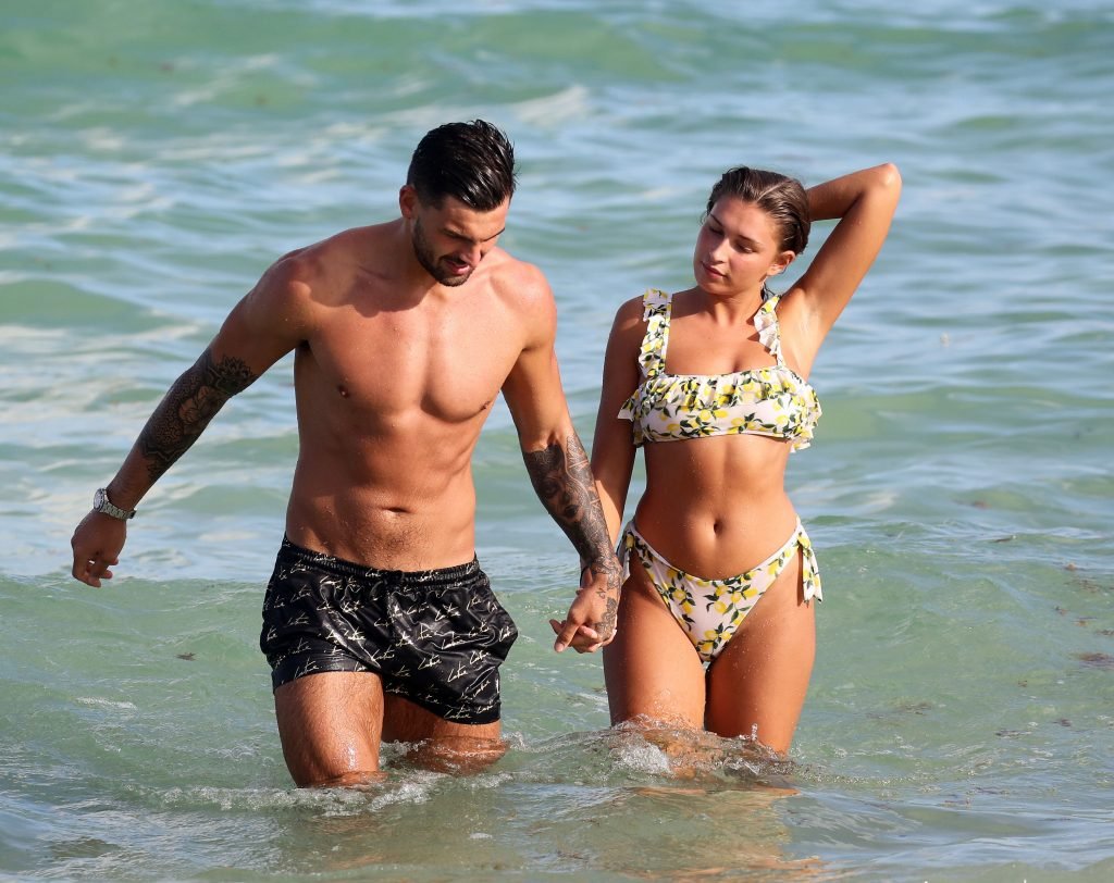 Love Island’s Zara McDermott (21) e Adam Collard mostrano i loro corpi da spiaggia e mostrano più PDA sulla spiaggia a Miami Beach, 11/08/2018.