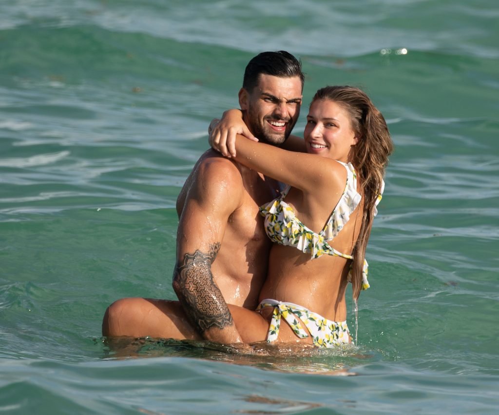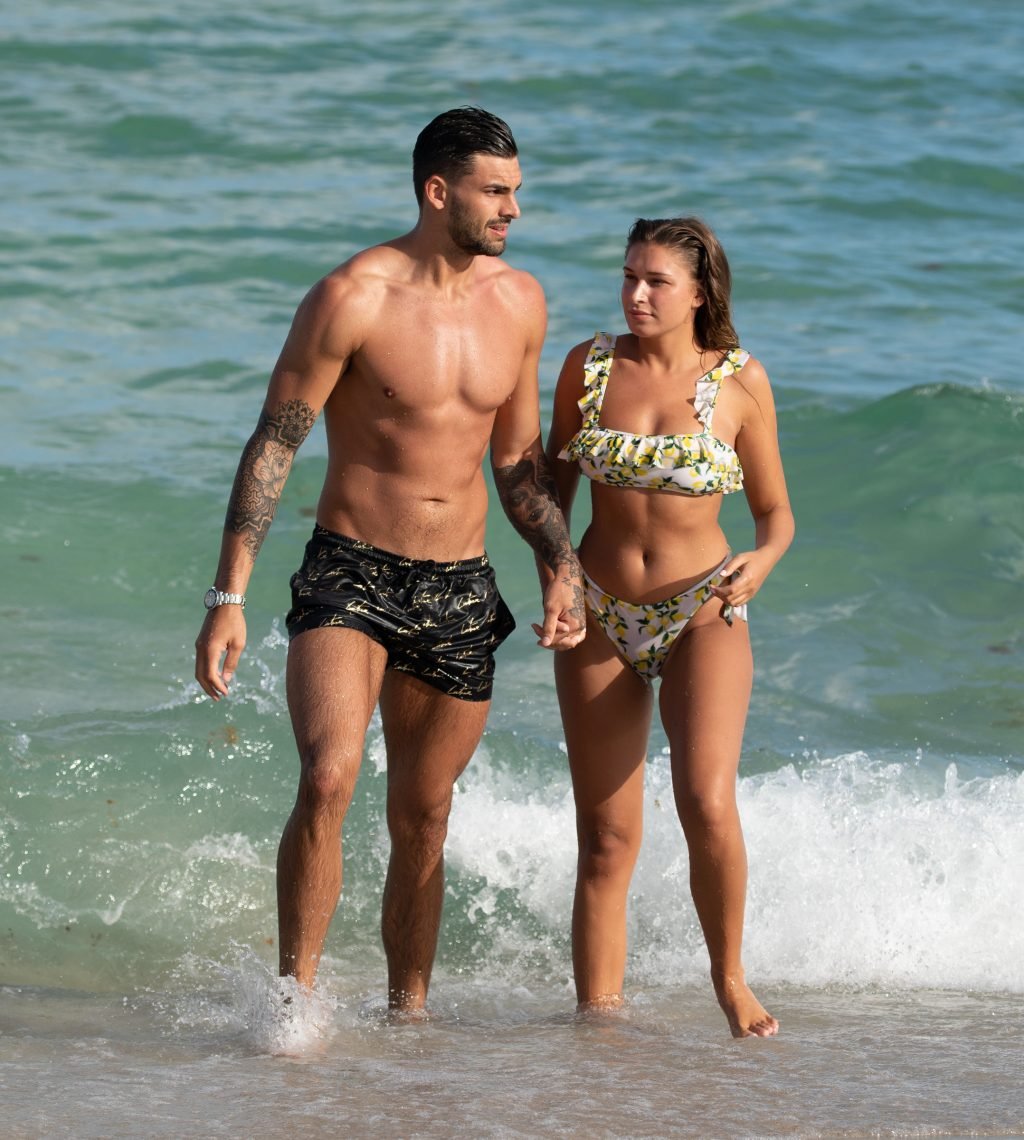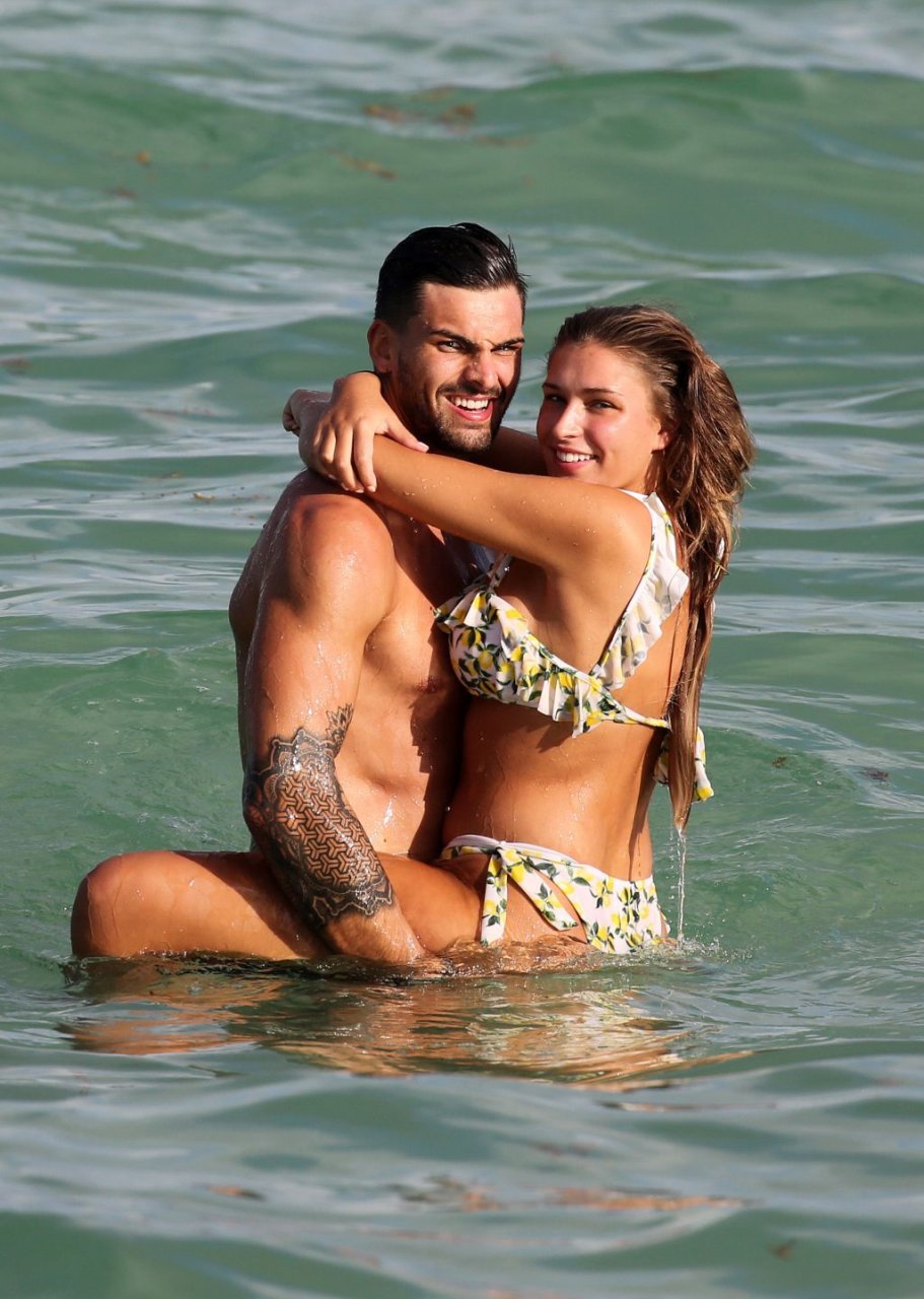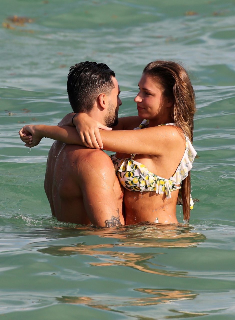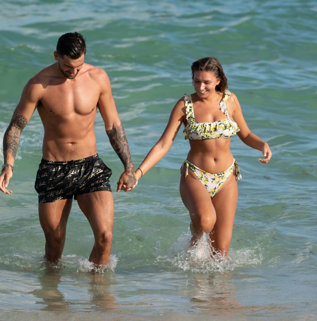 Love Island’s Zara McDermott (21) e Adam Collard mostrano i loro corpi da spiaggia e mostrano più PDA sulla spiaggia a Miami Beach, 11/08/2018.