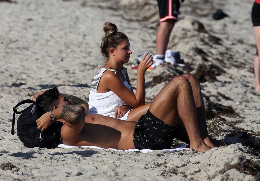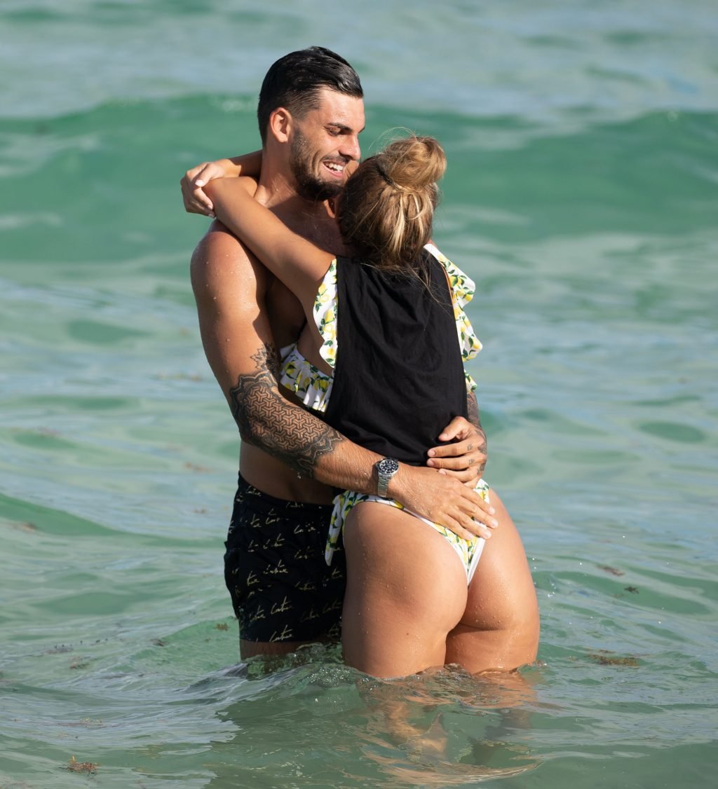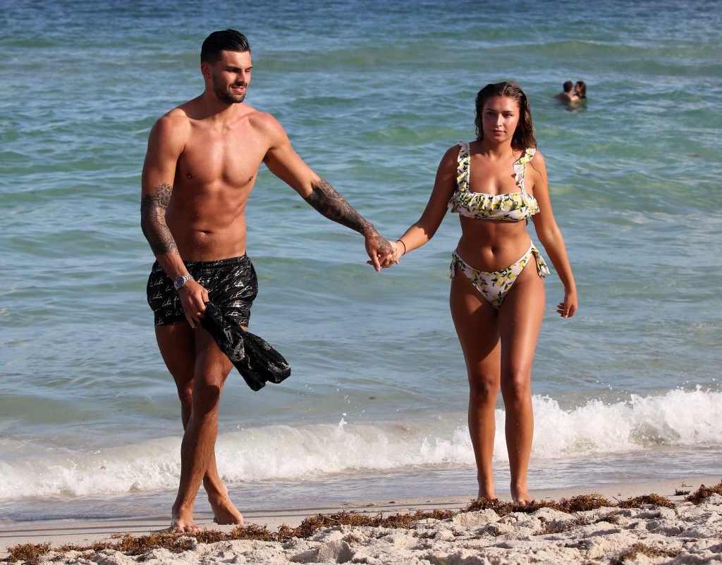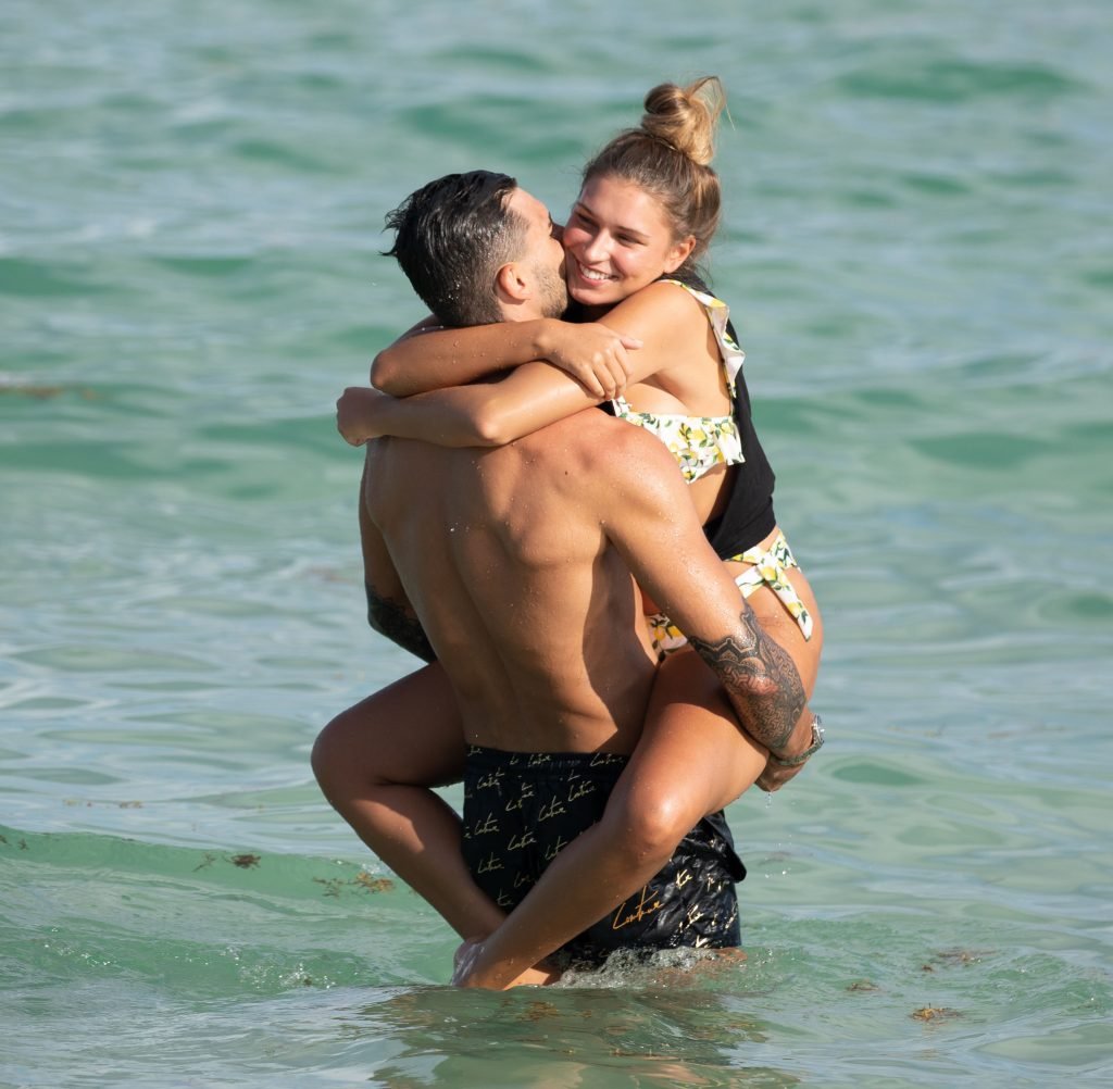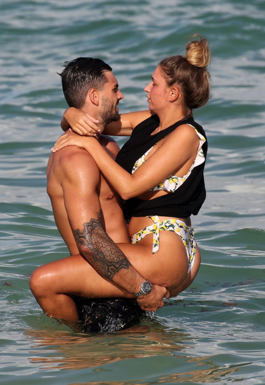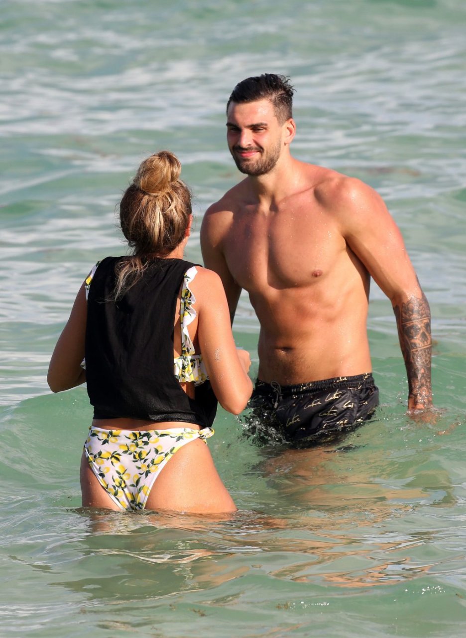 Love Island’s Zara McDermott (21) e Adam Collard mostrano i loro corpi da spiaggia e mostrano più PDA sulla spiaggia a Miami Beach, 11/08/2018.