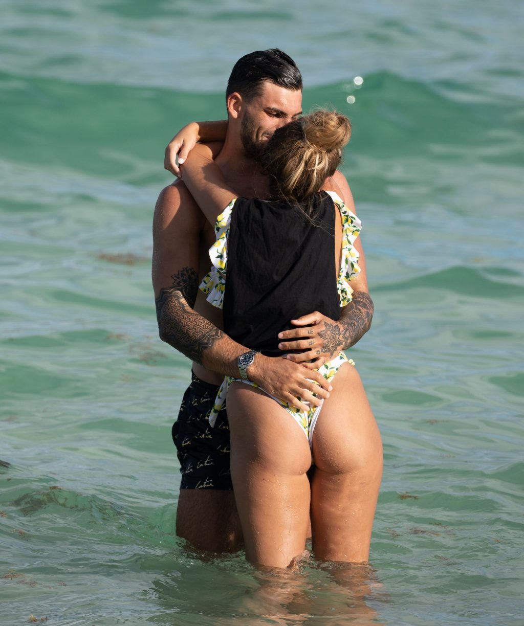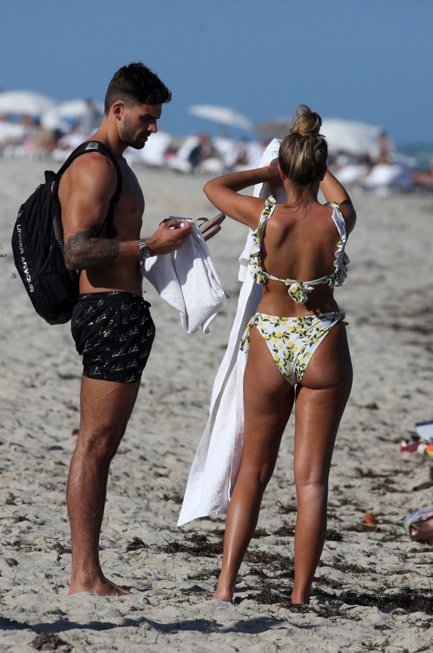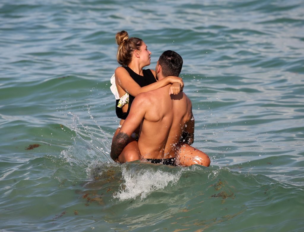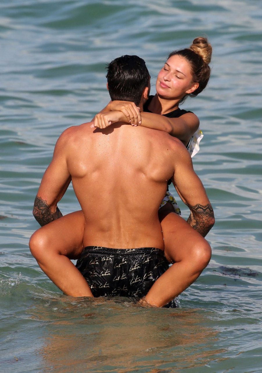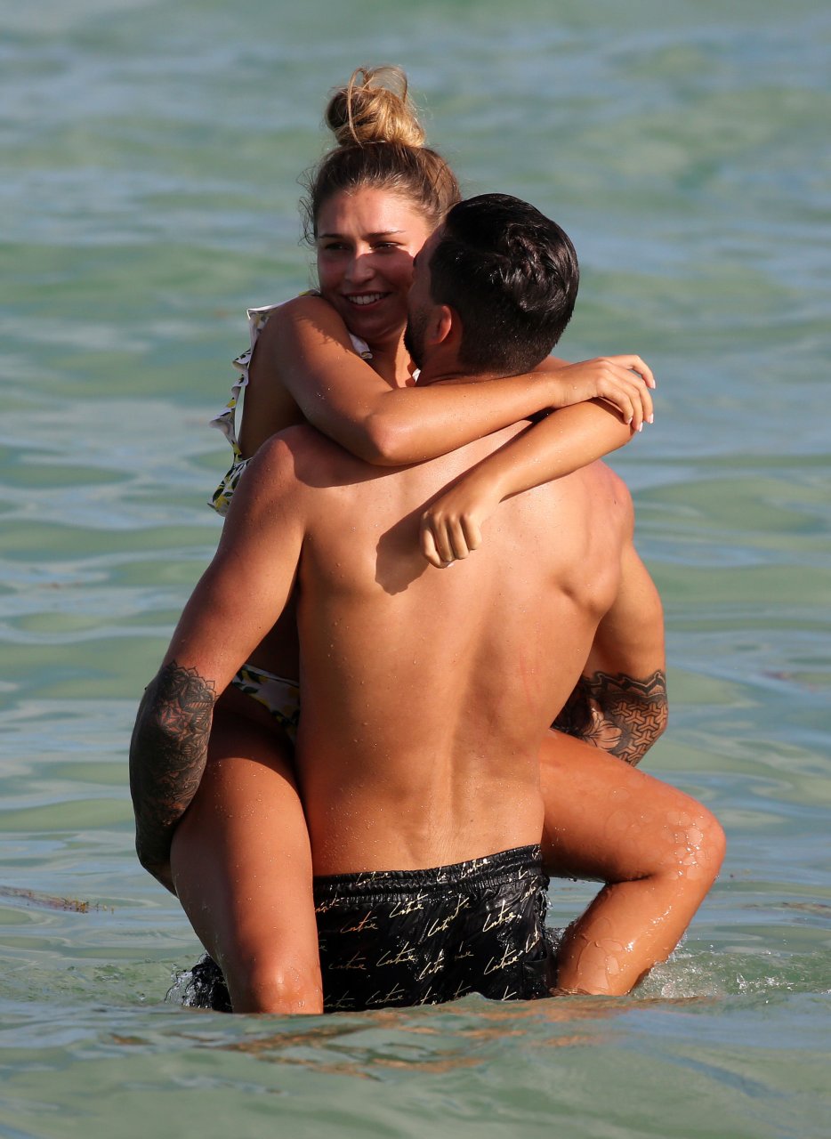 Love Island’s Zara McDermott (21) e Adam Collard mostrano i loro corpi da spiaggia e mostrano più PDA sulla spiaggia a Miami Beach, 11/08/2018.