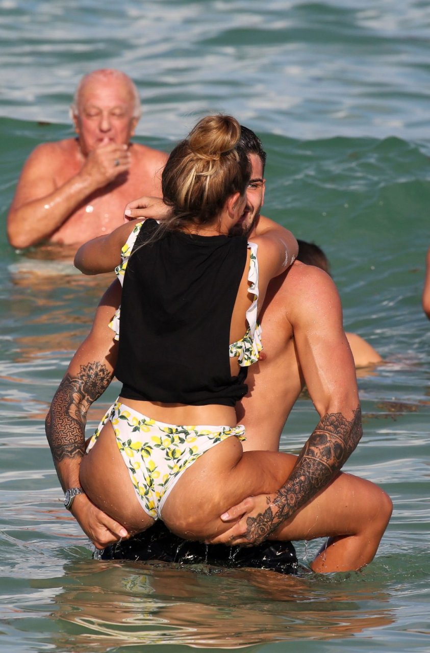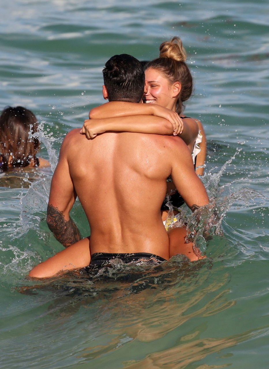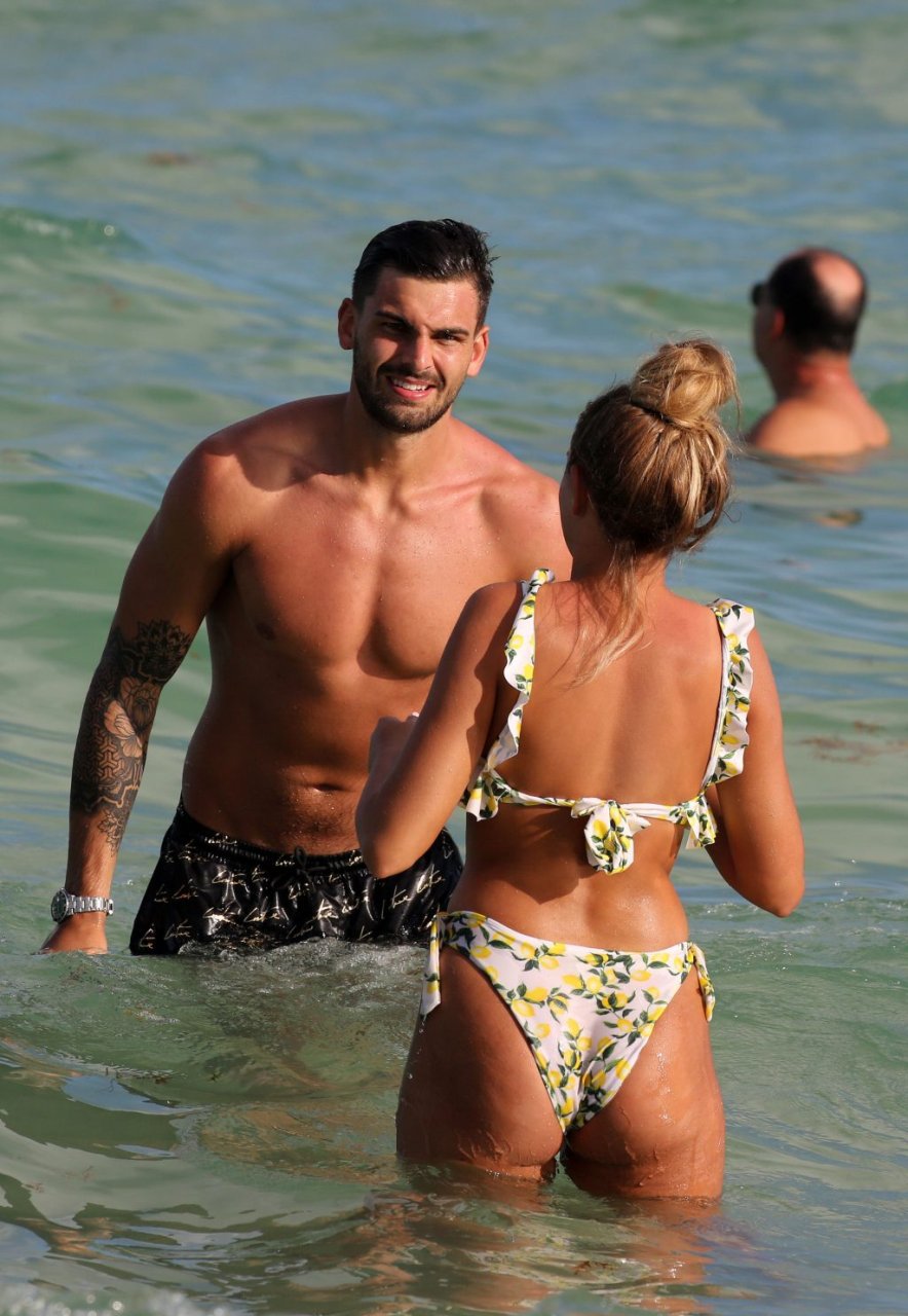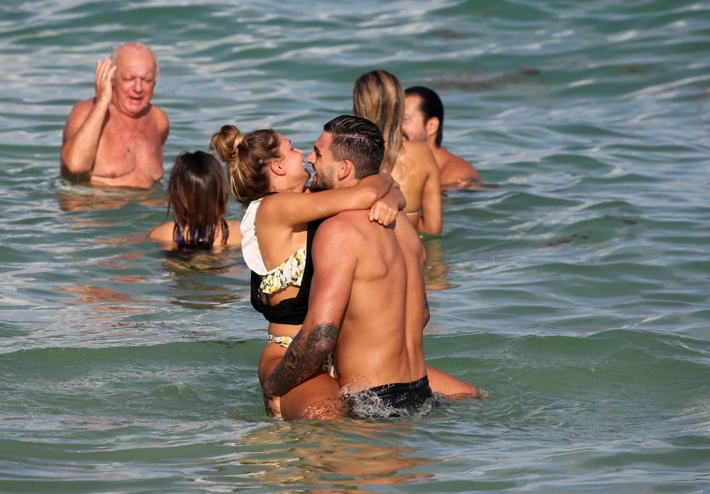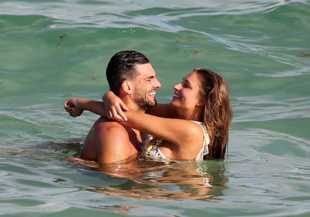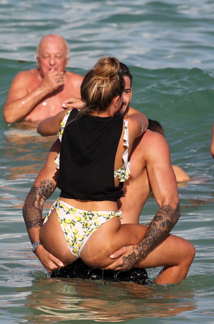 Love Island’s Zara McDermott (21) e Adam Collard mostrano i loro corpi da spiaggia e mostrano più PDA sulla spiaggia a Miami Beach, 11/08/2018.
