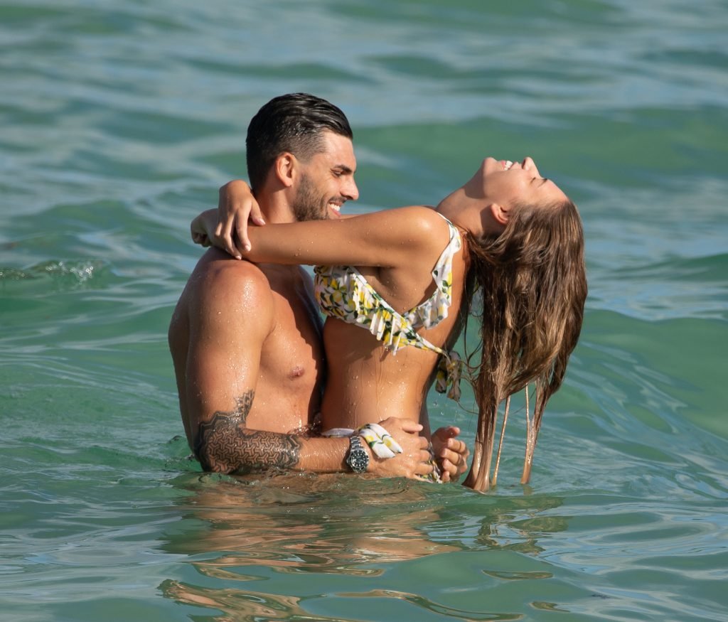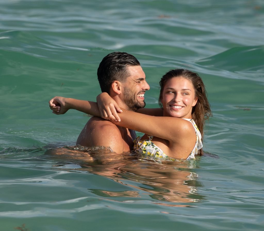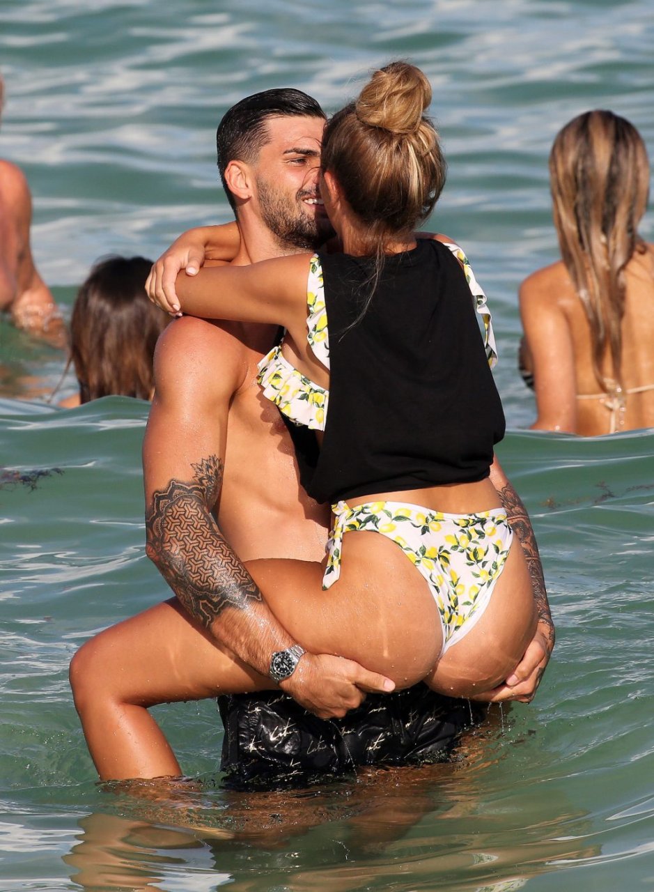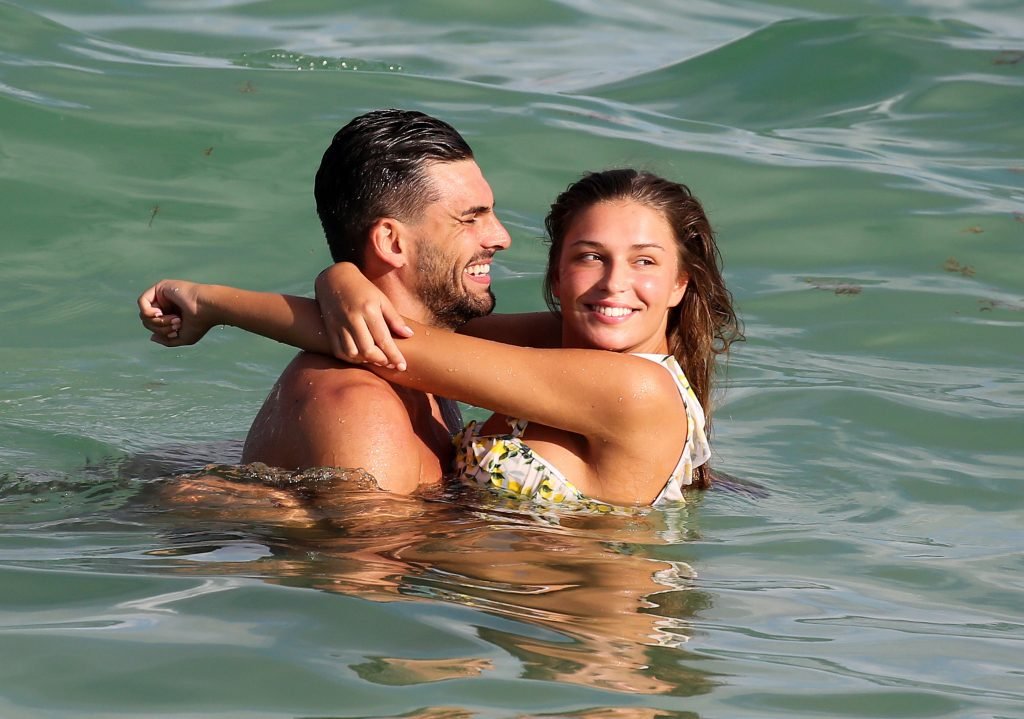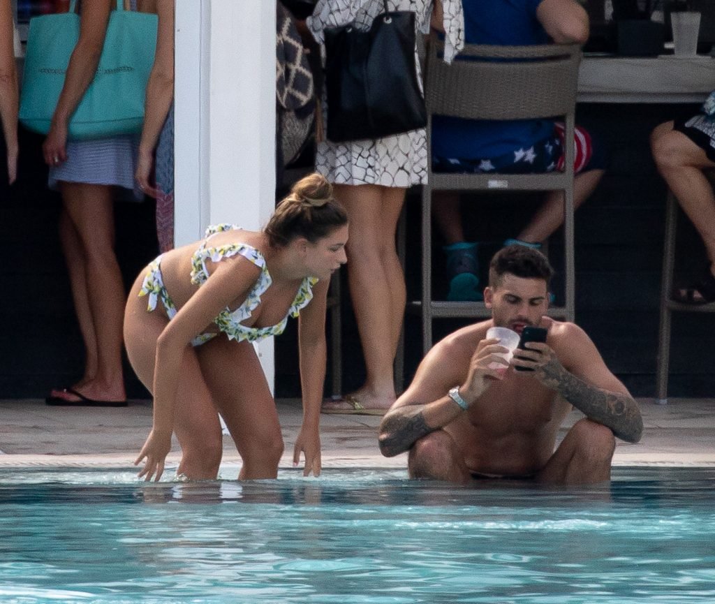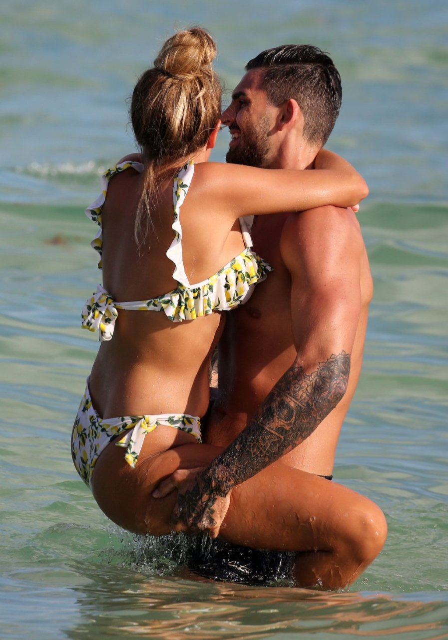 Love Island’s Zara McDermott (21) e Adam Collard mostrano i loro corpi da spiaggia e mostrano più PDA sulla spiaggia a Miami Beach, 11/08/2018.