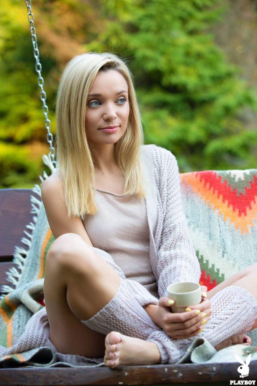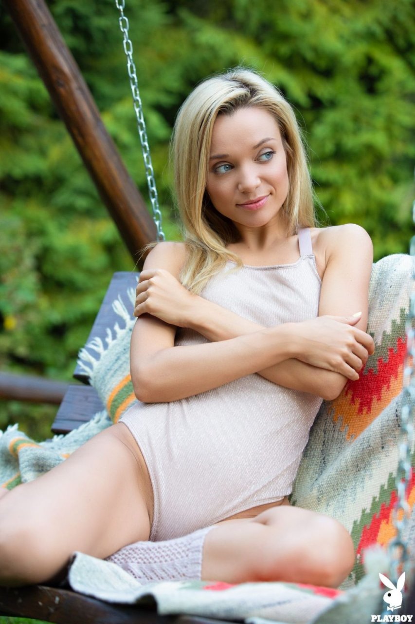 Zhenya Belaya è in un servizio fotografico nuda per la rivista Playboy + video HD. La modella di 27 anni posa in una splendida giornata di sole. È perfetto per giocare all’aperto con la sua “pussy”. La giovane bionda si diverte completamente nuda nel cortile e mostra i suoi piccoli seni, il sedere e le gambe sexy sulle altalene. A Zhenya piace viaggiare e mostrare il suo corpo magnifico.