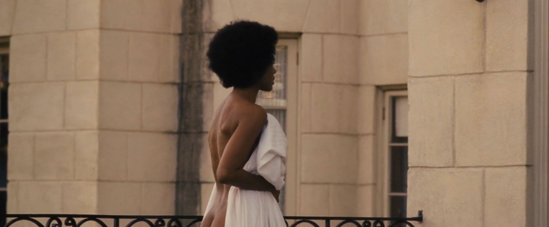 Nuovi screenshot e clip con Zoe Saldana da Nina (2016). Zoe Saldana si alza dal letto. Fa attenzione a non girarsi completamente però – mostrandoci solo un po’ del suo lato sinistro. E poi si gira sul balcone offrendoci una bella vista del suo sedere. E poi… Zoe Saldana è in piscina con un costume da bagno. Zoe Saldana è un’attrice e ballerina americana. Età: 37 (19 giugno 1978).