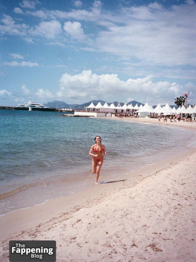 Zoey Deutch indossa un bikini minuscolo, mostrando un décolleté importante, gambe sexy e un corpo tonico mentre corre sulla spiaggia.